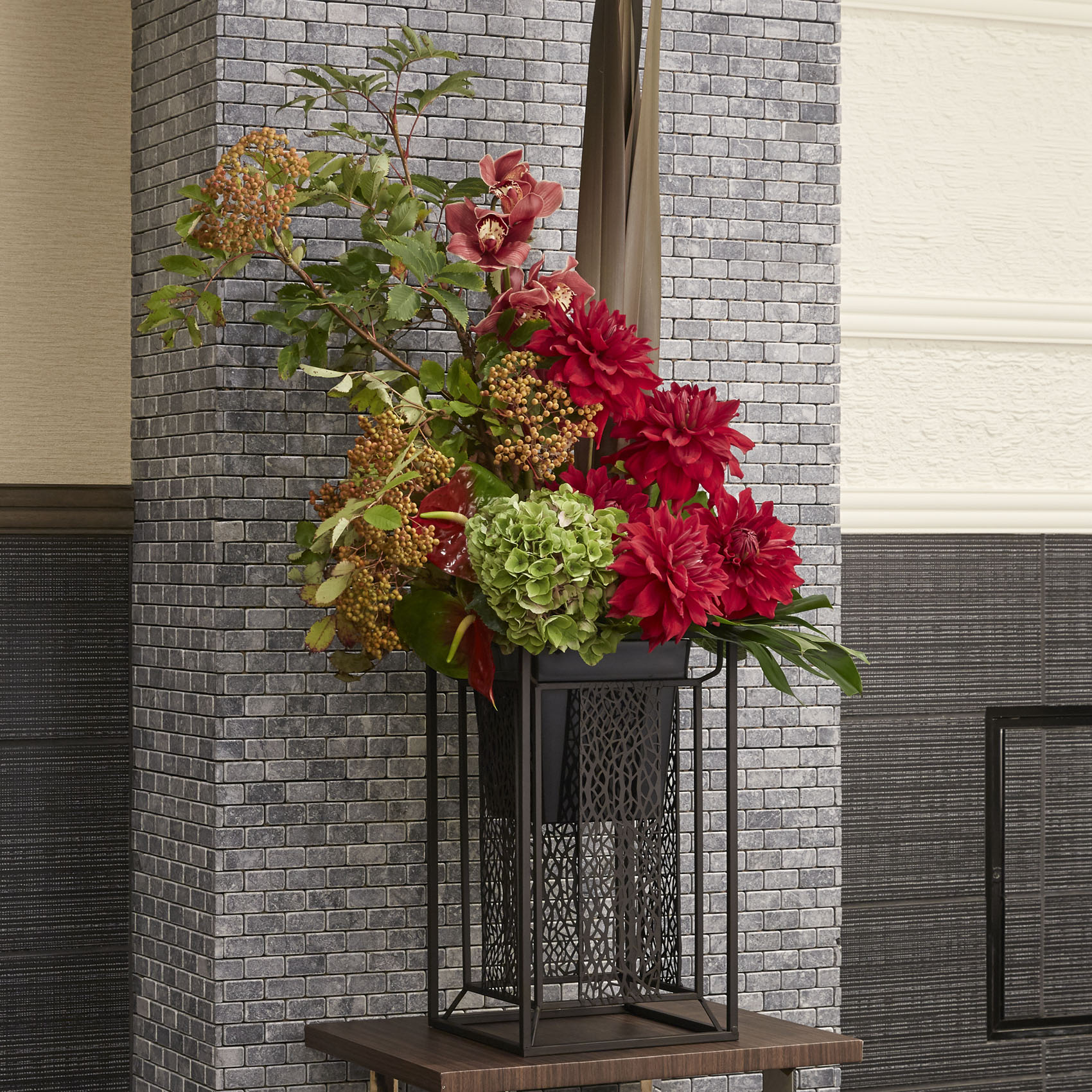 特別な空間を演出するために、市販の花桶に対応した装花用のスタンド。様々な高さのバリエーションがあり、場所に合わせて高さが選べます。納品や花の入れ替えがとても便利におこなえます。