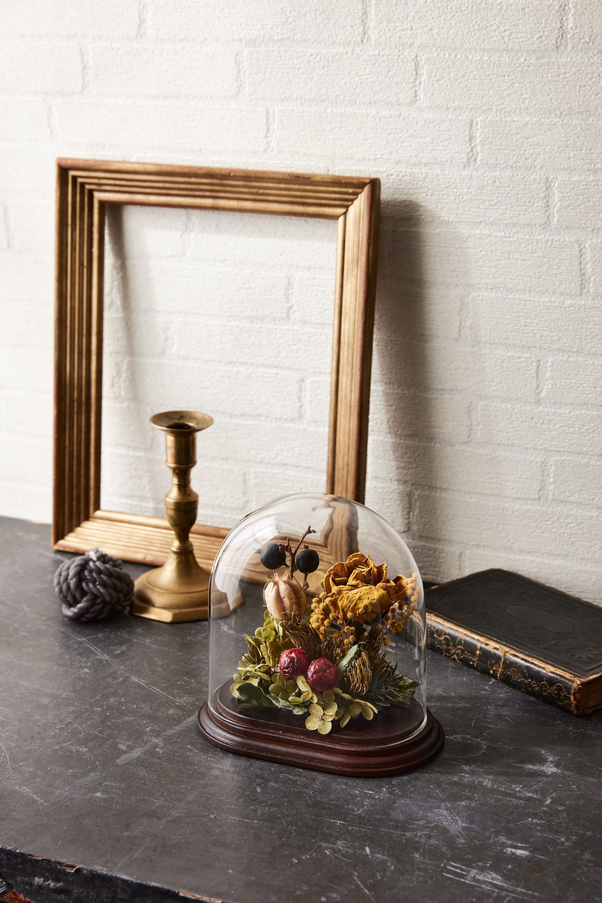これまでに無かったオーバル型のガラスドームは表現の幅を広げ、ボリューム感を出すことに適しています。アンティーク感のある木の台座によって世界観が出しやすくなっています。